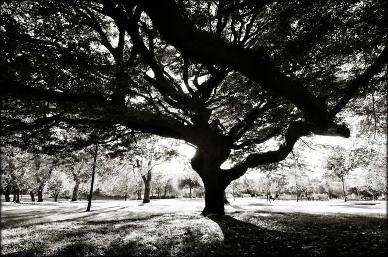 La luna, aquella noche, estaba increíblemente deslumbrante. Cuando rozó su cuello con sus aterciopelados labios, notó cómo se erizaba la piel de la espalda de aquel hermoso joven. Luego deslizó sus extremidades, rugosas como cortezas, recorriendo sus costados desnudos, mientras su boca presionaba suavemente la blanca carne junto a su garganta. Cuando empezó a notar el sabor de la sangre que entraba en sus vasos sintió que se le erizaba la epidermis toda de su cuerpo, y las hojas enderezaron su haz brillante para enseñárselo a la luna.